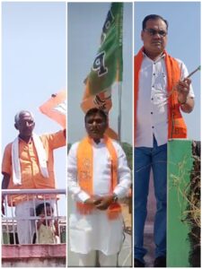 जनपद अध्यक्ष और नगरपालिका अध्यक्ष सहित कार्यकर्ताओं ने घर की छत पर बीजेपी का झंडा लगाया