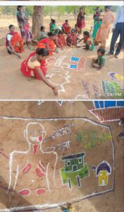 बैगा महिलाओं ने रंगोली बनाकर नशा मुक्त अभियान का संदेश दिया