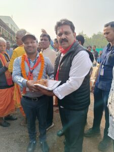 अयोध्या से रामलला के दर्शन कर वापस लौटे श्रद्धालुओं का डिप्टीसीएम विजय शर्मा ने किया सम्मान कवर्धा : अयोध्या से रामलला के दर्शन कर वापस लौटे श्रद्धालुओं का डिप्टी सीएम विजय शर्मा ने शाल और श्रीफल भेंटकर सम्मान किया । नगर पालिका अध्यक्ष मनहरण साहू , पूर्व जिला पंचायत अध्यक्ष संतोष पटेल , जिला बीजेपी उपाध्यक्ष कैलाश चंद्रवंशी , जिला बीजेपी उपाध्यक्ष नितेश अग्रवाल , कवर्धा शहर बीजेपी अध्यक्ष चंद्रप्रकाश चंद्रवंशी , नरेंद्र मानिकपुरी , राम विलास चंद्रवंशी जागेश्वर साहू , ओंमकार साहू , समाज कल्याण अधिकारी अभिलाषा पांडा , मोहित सिन्हा सहित बीजेपी कार्यकर्ता ओर शहर के निवासी उपस्थित रहे ।