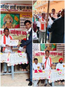 कवर्धा ; पूर्व नगर अध्यक्ष राजेंद्र सालूजा और प्राचार्य टीचर्स एवं बच्चों की उपस्थिति में ज्योति विद्या मंदिर हाई स्कूल कवर्धा में पूर्व नपाध्यक्ष मनहरण कौशिक ने ध्वजारोहण किया । ध्वजारोहण पूर्व राष्ट्रपिता महात्मा गांधी जी की पूजा कर नमन किया और ध्वजारोहण के उपरांत पूर्व नपाध्यक्ष मनहरण कौशिक सहित जनप्रतिनिधियों और टीचर्स और बच्चों ने एक दूसरे को स्वतंत्रता दिवस की बधाई दी । पूर्व नपाध्यक्ष मनहरण कौशिक ने प्रतिभावान स्टूडेंट को प्रशस्ति पत्र से सम्मानित किया ।