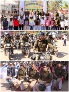 इसके पश्चात हेलमेट जागरूकता बाइक रैली का आयोजन किया गया, जिसमें पुलिस अधीक्षक सहित जिले के समस्त राजपत्रित अधिकारी एवं बड़ी संख्या में पुलिसकर्मियों ने सहभागिता की। बाइक रैली के माध्यम से जिलेवासियों को सुरक्षित वाहन संचालन, हेलमेट पहनने एवं यातायात नियमों के पालन का संदेश दिया गया ।