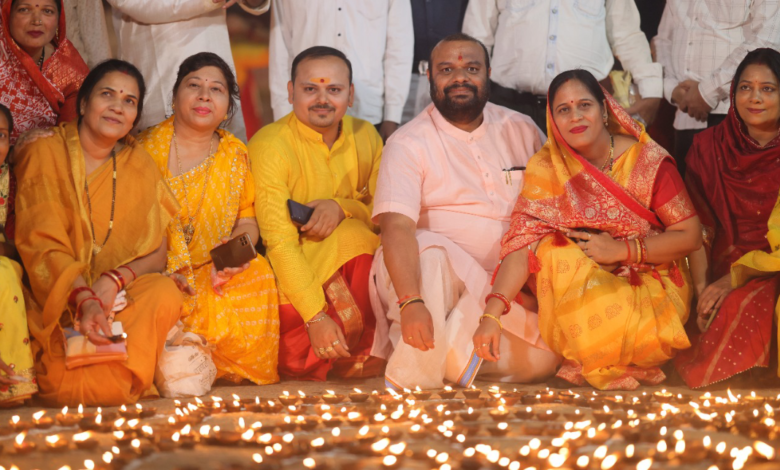 कवर्धा.. छत्तीसगढ़ में श्री शंकराचार्य जन कल्याण न्यास के बैनर में उमंग पांडेय और स्मृति उपाध्यायजी के नेतृत्व में लगभग 4,000 महिलाओं ने कार्तिक पूर्णिमा देव दीपावली के दिन 51 हजार दीपदान किया। मुख्य अतिथि रहें श्रीमद् ज्योतिर्मयानंद सरस्वती जी lइस अवसर पर श्रीमद् ज्योतिर्मयानंद सरस्वती जी महाराज छत्तीसगढ़ के प्रथम दंडी महाराज ‘दंडी स्वामी सलधा धाम जिला बेमेतरा’ छत्तीसगढ़ मुख्य अतिथि के रूप में उपस्थित थे।