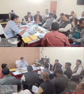 दुर्ग संभाग के प्रधानमंत्री ग्राम सड़क योजना विभाग अधीक्षण अभियंता बी एस पटेल ने कवर्धा में अधिकारियों ओर ठेकेदारों की बैठक ली
