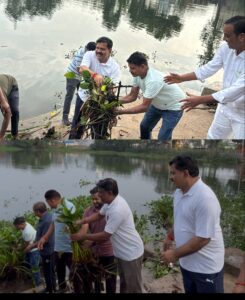 कवर्धा ; प्रदेश के उपमुख्यमंत्री विजय शर्मा ने रविवार की सुबह कवर्धा नगर पालिका क्षेत्र के दर्री तालाब में पहुंचकर श्रमदान किया और प्रदेशवासियों को स्वच्छता का प्रेरक संदेश दिया। उपमुख्यमंत्री के साथ नगर पालिका अध्यक्ष , जनप्रतिनिधि, अधिकारी और बड़ी संख्या में स्थानीय नागरिकों ने भी इस स्वच्छता अभियान में सहभागिता की। उपमुख्यंत्री विजय शर्मा के श्रमदान में पालिका के दूसरे वार्डो के पार्षदों और गणमान्य नागरिकों ने भी अपना हाथ बढ़ाया। । देखते ही देखते लोग जुटते चले गए और तालाब के चारों ओर मानव शृंखला बनाकर एकजुट होकर सफाई कार्य में लग गए। कुछ लोग जलकुंभी और कचरा निकालने में जुटे तो कुछ लोगों ने तालाब के किनारे और घाटों की सफाई की।उपमुख्यमंत्री विजय शर्मा ने इस अवसर पर कहा कि स्वच्छता केवल अभियान नहीं, यह एक जनआंदोलन है।नगर पालिका अध्यक्ष श्री चन्द्र प्रकाश चन्द्रवंशी ने कहा कि “कवर्धा नगर पालिका ‘स्वच्छ, सुंदर और विकसित कवर्धा’ की परिकल्पना को साकार करने की दिशा में लगातार प्रयास कर रही है। इस अभियान में जनता का ऐसा उत्साह देखना हमारे लिए गौरव का विषय है।”