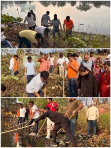 नगर पालिका अध्यक्ष चंद्रप्रकाश चंद्रवंशी के नेतृत्व में राधाकृष्णा तालाब में श्रमदान