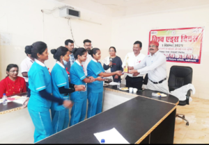 जिला चिकित्सालय के सभागृह में विश्व एड्स दिवस पर क्विज प्रतियोगिता में विजेताओं का प्रशस्ति पत्र देकर किया गया सम्मान
