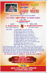 नगर पालिका अध्यक्ष चंद्रप्रकाश चंद्रवंशी ने बताया कि भव्य हनुमंत वाटिका का निर्माण नगर के सौंदर्यीकरण एवं आध्यात्मिक उत्थान के उद्देश्य से किया गया है। यहाँ स्थापित भगवान श्री हनुमान जी की विशालकाय प्रतिमा नगर के मध्य में श्रद्धा भक्ति का केंद्र बनेगी। हरीतिमा से आच्छादित परिसर, सुंदर पथ वाटिकाएँ, विद्युत प्रकाश से सुसज्जित यह स्थान श्रद्धालुओं को भक्ति और आस्था का अद्वितीय अनुभव कराएगा। उन्होनंे बताया कि यह वाटिका न केवल नगरवासियों के लिए सुकुन स्थल है, बल्कि ध्यान, साधना और आत्मिक एकाग्रता का केन्द्र भी सिद्ध होगी। नगर पालिका परिषद ने इसे ‘‘आध्यात्मिक सौंदर्य का प्रतीक‘‘ बताते हुए इसके संरक्षण एवं नियमित धार्मिक आयोजन की योजना बनाई है।